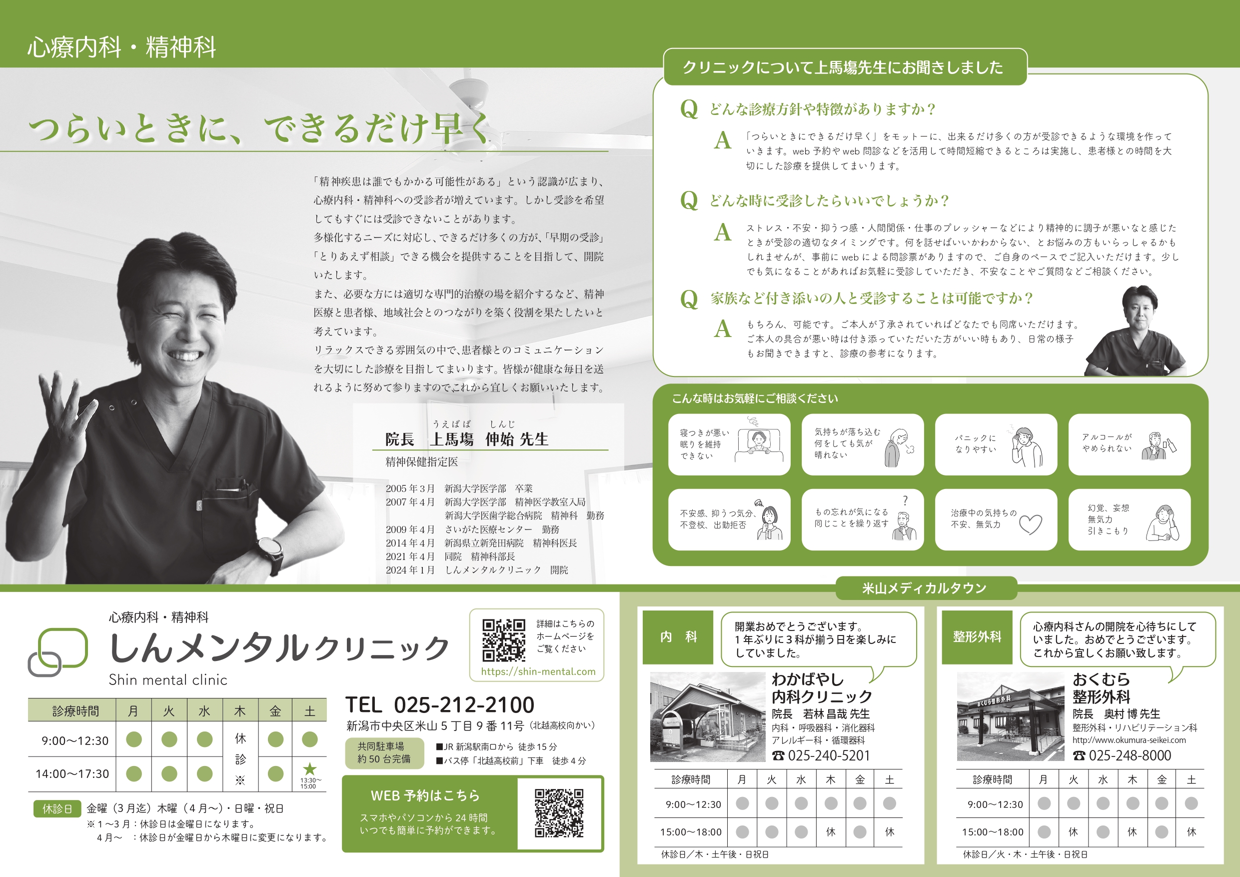 1月25日(木)新潟市中央区米山にて「しんメンタルクリニック」が開院致します!