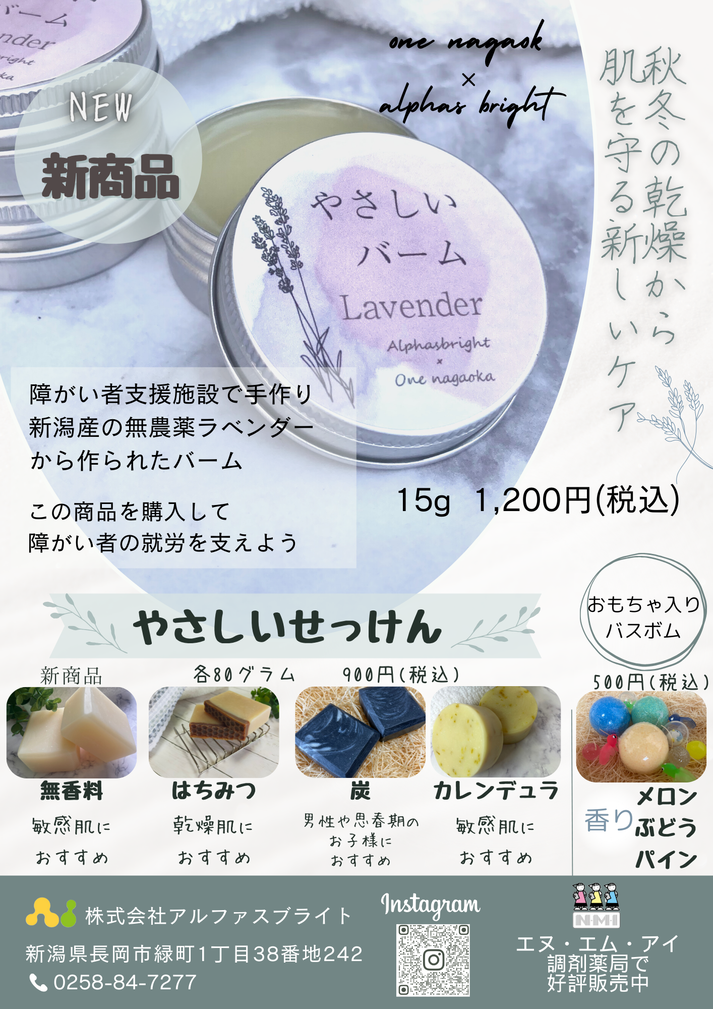 11/20よりエヌ・エム・アイ調剤薬局全店舗にて障がい者手作りの商品「やさしいバーム」の販売を開始します。